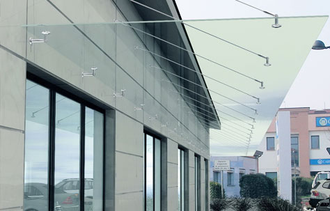 Стеклянные козырьки и навесы изготавливаются только из безопасного стекла: закаленного или ламинированного. Каждая конструкция имеет свои собственные размеры - стандартов здесь нет. Толщина и качество материала, а также способ крепления стеклянных козырьков зависит как от пожеланий заказчика, так и от объективных требований к прочности конструкции.